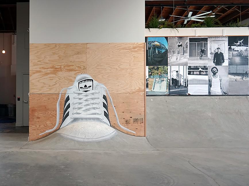 Brendon Farrell took the project through code analysis, city permitting, permitting and more permitting to create a fun environment for skateboarding and filming focused on the Adidas active lifestyle.