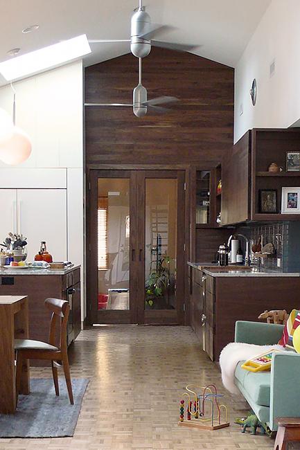 Portland, Oregon The Tillamook project is an extensive renovation and reconfigure of existing mid century modern duplex to single family residence. Located in a historic district, the new design streamlined circulation with a clear North / South axis connecting the yard to converted garage. With ample circulation the home provides clean modern lines and warm domestic environments to update a Portland architectural gem.